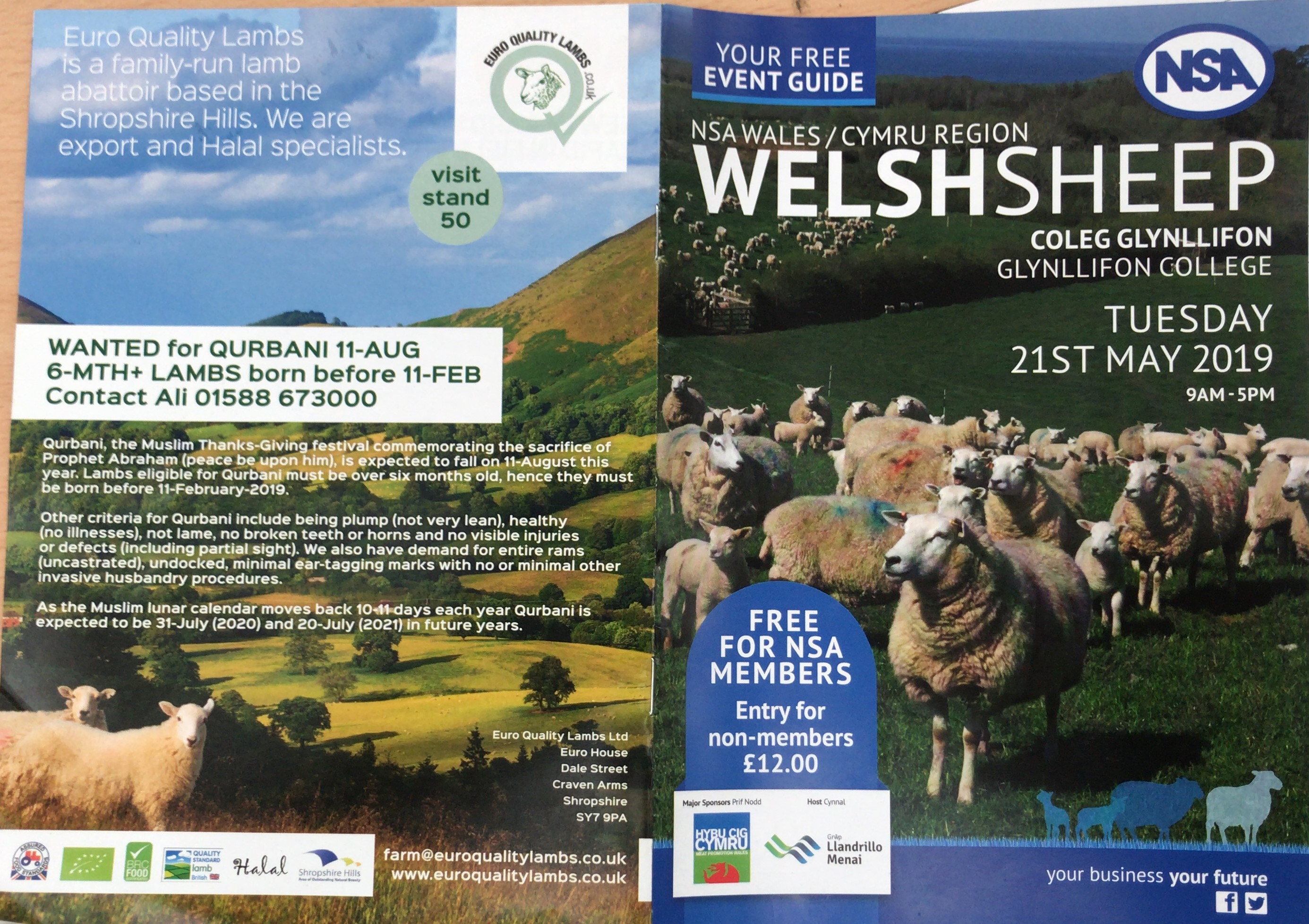 Aqiqah service providers must engage with farmers and livestock traders to ensure the animals meet the right criteria. We at EQL have been engaging with farmers at livestock events to educate them on this critiera for Qurbani and Aqiqah. See full-page advert taken out at the NSA Welsh Sheep event.